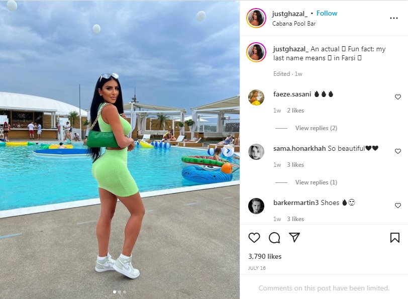 Η νεαρή κοπέλα, που μοιάζει υπερβολικά στην Κιμ Καρντάσιαν, δημοσίευσε τα views σε ένα story της στο instagram, στα οποία φαίνεται και το όνομα του Λεμπρόν Τζέιμς. «Κάθε μέρα και ένας νέος ράπερ ή αθλητής επιμένει ενοχλητικά. Από μένα είναι όχι», έγραψε μάλιστα σαν σχόλιο η influencer με το διαδικτυακό όνομα Just Ghazal.