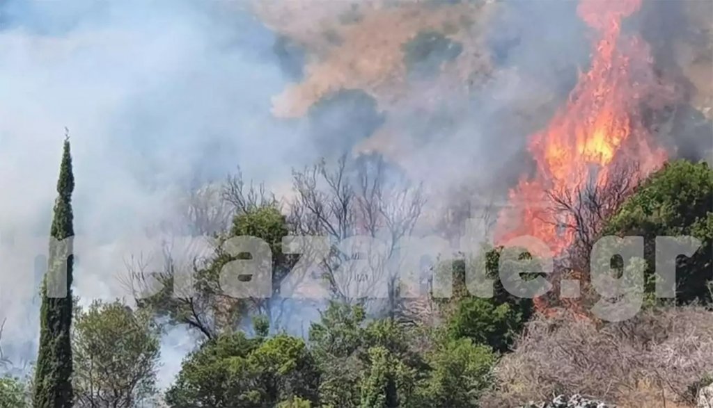 Μεγάλη φωτιά ξέσπασε πριν λίγη ώρα στην ορεινή Ζάκυνθο και συγκεκριμένα στον Ασκό.