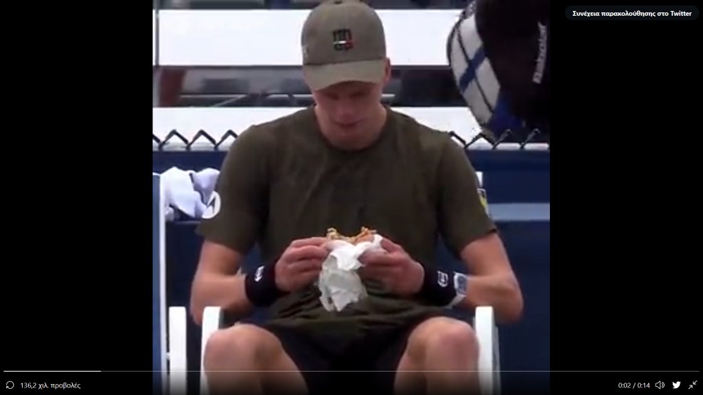 Τις δικές του διατροφικές συνήθειες φαίνεται πως έχει ο Τζένσον Μπρούσκμπι όταν παίζει τένις. Αντί για μπανάνες ή ενεργειακές μπάρες που χρησιμοποιούν οι παίκτες στη διάρκεια του αγώνα, ο 21χρονος Αμερικανός επέλεξε το χάμπουργκερ.