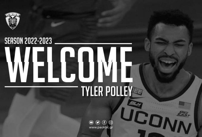 "Η ΚΑΕ ΠΑΟΚ mateco ανακοινώνει τη συμφωνία με τον Αμερικανό φόργουορντ Tyler Polley, ο οποίος θα αγωνιστεί στην ομάδα μας για την αγωνιστική περίοδο 2022-2023. Καλωσορίζουμε τον Tyler στη μεγάλη οικογένεια του ΠΑΟΚ.