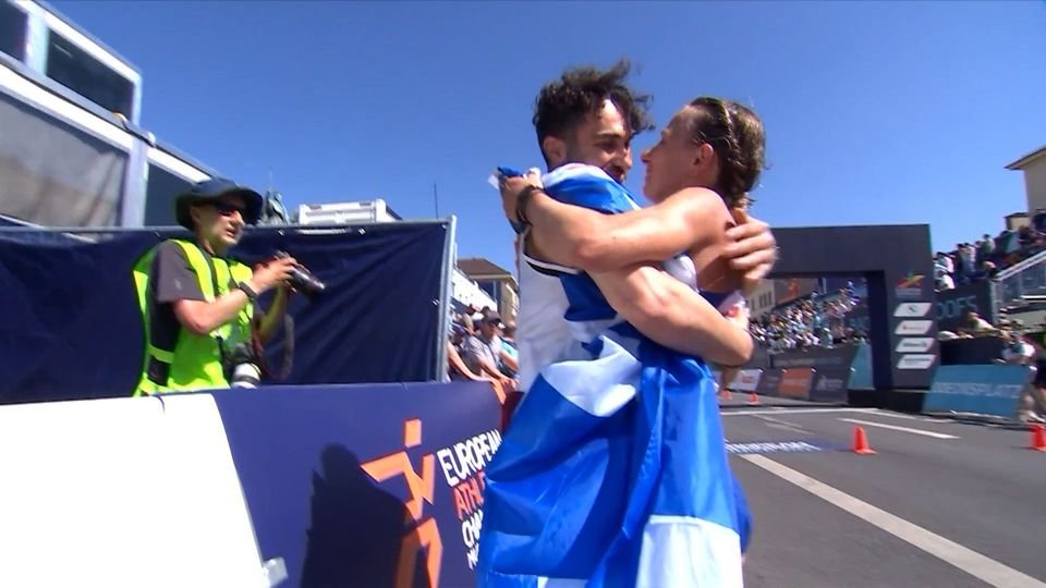 Το πρώτο ελληνικό μετάλλιο στο Μόναχο είναι χρυσό και ανήκει στην 38χρονη Αντιγόνη Ντρισμπιώτη, που κατέκτησε την πρώτη θέση στα 35 χιλιόμετρα βάδην. Η τρυφερή στιγμή της Αντιγόνης Ντρισμπιώτη με τον σύζυγό της και οι πανηγυρισμοί