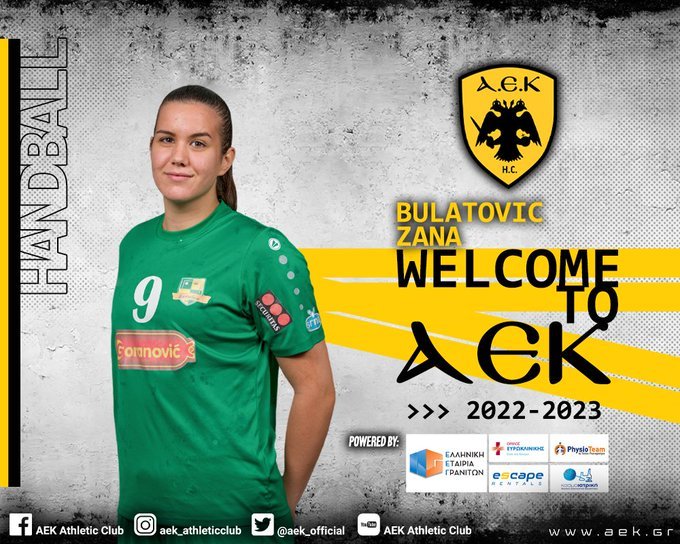 Η ΑΕΚ βρίσκεται στην ευχάριστη θέση να ανακοινώσει την έναρξη της συνεργασίας της με την Ζάνα Μπουλάτοβιτς. Η 20χρονη (14/02/2002) διεθνής πίβοτ από το Μαυροβούνιο, υπέγραψε μονοετές συμβόλαιο και εντάσσεται στο δυναμικό της γυναικείας ομάδας Χάντμπολ.