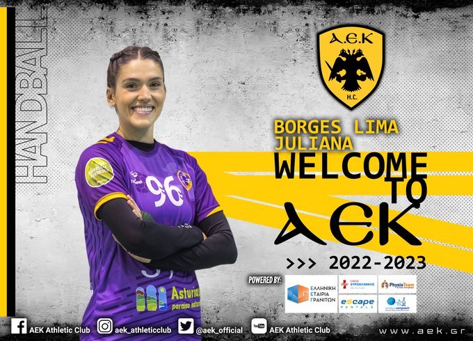 Η ΑΕΚ βρίσκεται στην ευχάριστη θέση να ανακοινώσει την έναρξη της συνεργασίας της με την Τζουλιάνα Μπόργκες Λίμα. Η 26χρονη (01/03/1996) αριστερή ίντερ, ύψους 1,78 μ., από την Βραζιλία, υπέγραψε μονοετές συμβόλαιο και εντάσσεται στο δυναμικό της γυναικείας ομάδας Χάντμπολ.