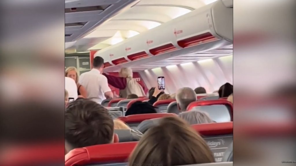 Τότε λέγεται ότι παρήγγειλε ένα τζιν τόνικ, αλλά ένα μέλος του πληρώματος της καμπίνας φέρεται να της πήρε το ποτό αφού έγινε όλο και πιο επιθετική. Το βίντεο δείχνει έναν άνδρα από το προσωπικό της πτήσης να σκύβει και να προσπαθεί να την ηρεμήσει.
