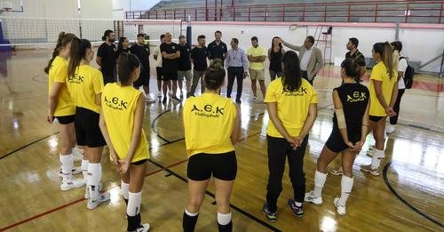 Τις αθλήτριες της ΑΕΚ, καλωσόρισαν ο πρόεδρος της Ερασιτεχνικής, Αλέξης Αλεξίου, ο γενικός αρχηγός του Σωματείου, Ηλίας Χατσίκας και ο διοικητικός υπεύθυνος του τμήματος, Λευτέρης Αρχόντης.