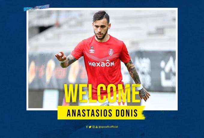 «Η εταιρεία ΑΠΟΕΛ ΠΟΔΟΣΦΑΙΡΟ (ΔΗΜΟΣΙΑ) ΛΤΔ ανακοινώνει τη συμφωνία δανεισμού με την Stade de Reims, για μονοετή δανεισμό του ποδοσφαιριστή Αναστάσιου Δώνη.