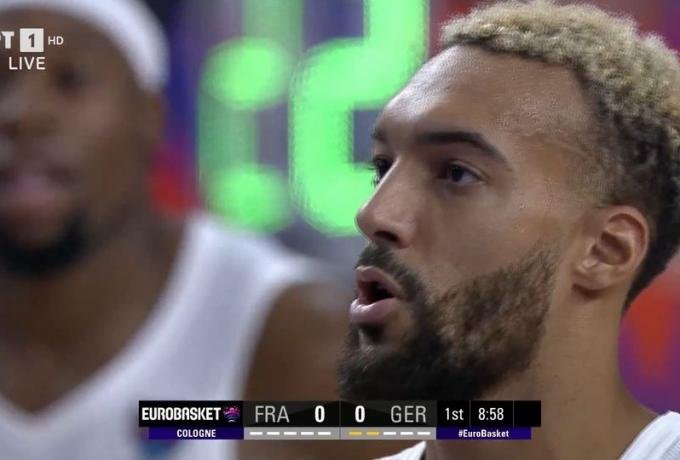 Μόλις στο ξεκίνημα του αγώνα, ο Ρούντι Γκομπέρ βρέθηκε στις βολές, όμως έκανε airball στην πρώτη του βολή, δίνοντας την ευκαιρία στο γερμανικό κοινό να... τον γιουχάρει.