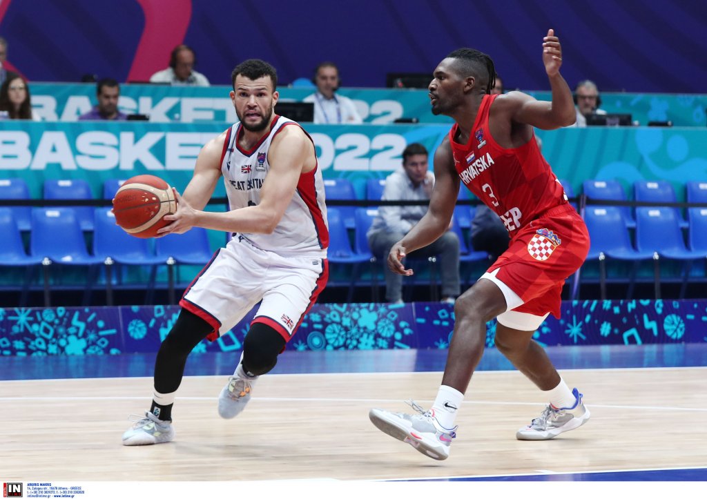 Εν αντιθέσει με ό,τι συνέβη απέναντι στην Ουκρανία, η Μεγάλη Βρετανία ξεκίνησε καλά και έδειξε ικανή να προβληματίσει την Κροατία. Με τον Μάιλς Χέσον (16 πόντοι στην ανάπαυλα) σε πρωταγωνιστικό ρόλο, η ομάδα του Νέιθαν Ρέινκινγκ έμεινε κοντά μέχρι το ημίχρονο (31-37), αλλά από εκεί και πέρα ήρθε η κατάρρευση.