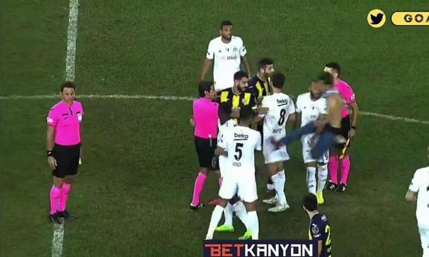 Με το σφύριγμα της λήξης, στο Ανκαραγκουτσού-Μπεσίκτας, οπαδός των γηπεδούχων εισέβαλε στον αγωνιστικό χώρο και κλώτσησε στην πλάτη τον Σαλίχ Ουτζάν της Μπεσίκτας.