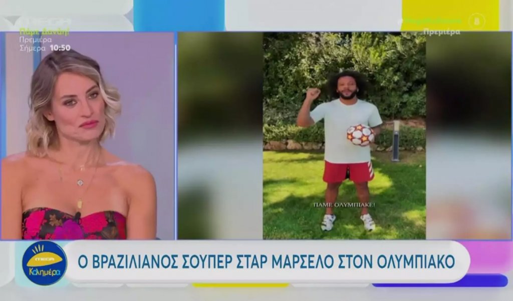 Έτσι λοιπόν, ο Θανάσης Πάτρας είπε πως "έχουμε τεράστια άφιξη. Θα σας πάω σε αθλητικό γεγονός, σε ποδοσφαιρικό γεγονός. Ο Ολυμπιακός, ο θρύλος συμφώνησε με τον Βραζιλιάνο Μαρσέλο. Να σας πω οτι ο Μαρσέλο ήταν παίκτης στην Ρεάλ Μαδρίτης 16 συναπτά έτη. Οπότε καταλαβαίνετε οτι μιλάμε για τεράστια μεταγραφή. Φοβερή μουτσούνα ο ίδιος. Ένα από τα καλύτερα, δεξί ακραία μπακ".