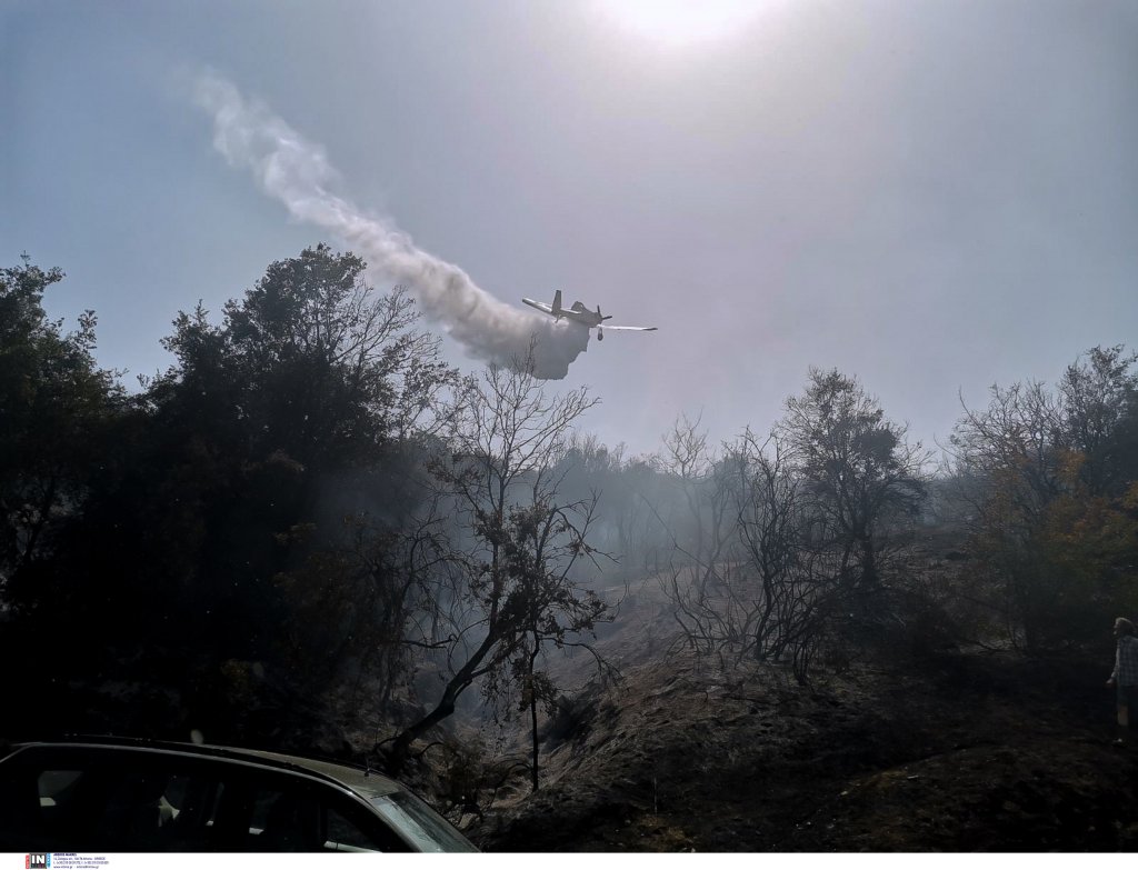 Στην περιοχή πνέουν ισχυρότατοι άνεμοι εντάσεως έως 8 μποφόρ. Προς το παρόν δεν απειλούνται οικισμοί σύμφωνα με την πυροσβεστική.