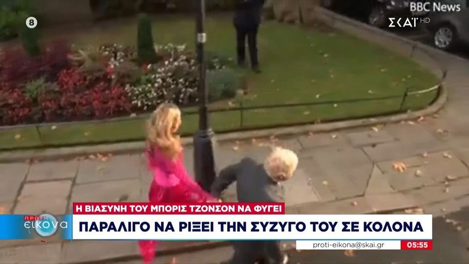 Η βιασύνη του Μπόρις Τζόνσον να φύγει από την Ντάουνινγκ Στριτ τον έκανε να τραβολογά τη σύζυγό του και λίγο έλειψε να τη ρίξει σε κολόνα