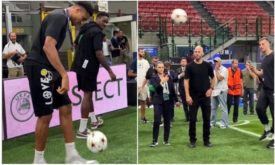 Με αφορμή το ρεπό της Εθνικής, στο Ευρωμπάσκετ, ο φόργουορντ των Μιλγουόκι Μπακς βρέθηκε στο γήπεδο της Ίντερ, μαζί με τα αδέλφια του, Κώστα και Θανάση, αλλά και τους Αγραβάνη, Παπαγιάννη, Παπανικολάου, Καλάθη και Λαρενζάκη.