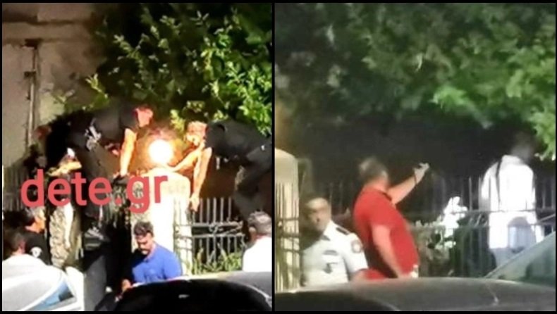 Αμέσως ειδοποιήθηκε η ΕΛ.ΑΣ. που έφτασε στο σημείο, όμως ο άνδρας αυτός είχε ταμπουρωθεί στο σπίτι του, με αποτέλεσμα να ακολουθήσει διαπραγματεύσεις.
