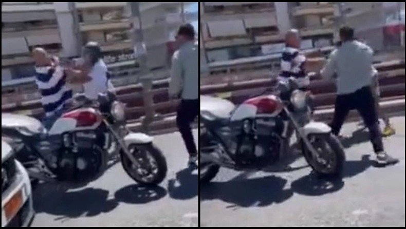Ο οδηγός της μηχανής σοκαρισμένος προσπαθεί να αμυνθεί, ενώ μαζί με τον Αχιλλέα Μπέο υπάρχει ακόμα ένας άνδρας, ο οποίος συμμετέχει στον ξυλοδαρμό του νεαρού άνδρα, φωνάζοντας παράλληλα: «ξέρεις που μιλάς ρε;».