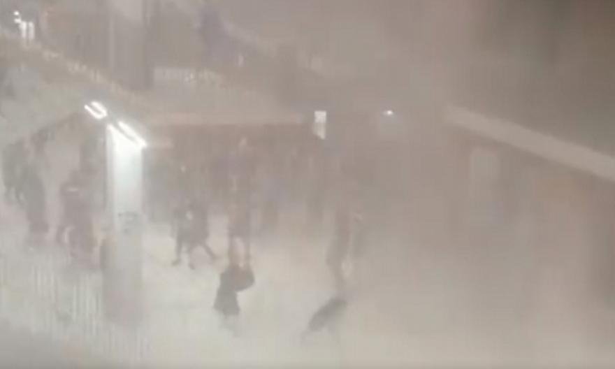 Από βίντεο που κυκλοφόρησε στα social media, διακρίνονται οπαδοί και αστυνομικές δυνάμεις μέσα σε σύννεφα καπνού, με αντικείμενα να εκσφενδονίζονται κατά πάσα κατεύθυνση.