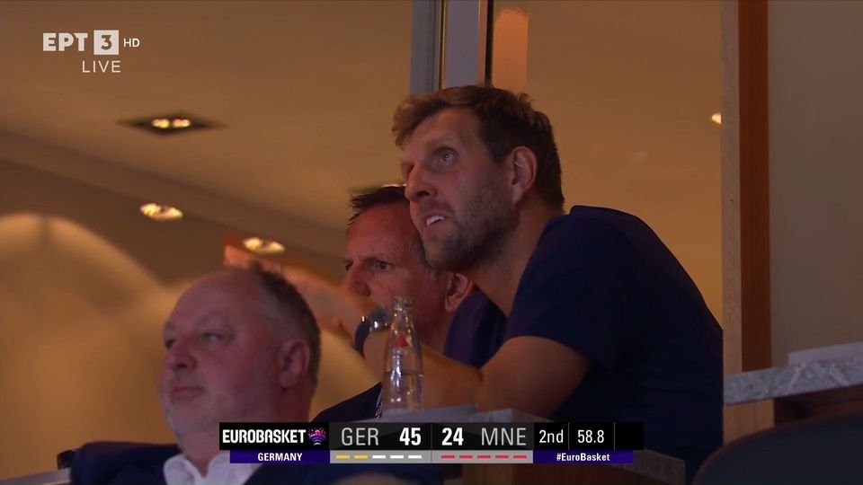 Ο θρύλος του γερμανικού μπάσκετ Ντιρκ Νοβίτσκι βρίσκεται στο γήπεδο και παρακολουθεί την προσπάθεια της χώρας του κόντρα στο Μαυροβούνιο