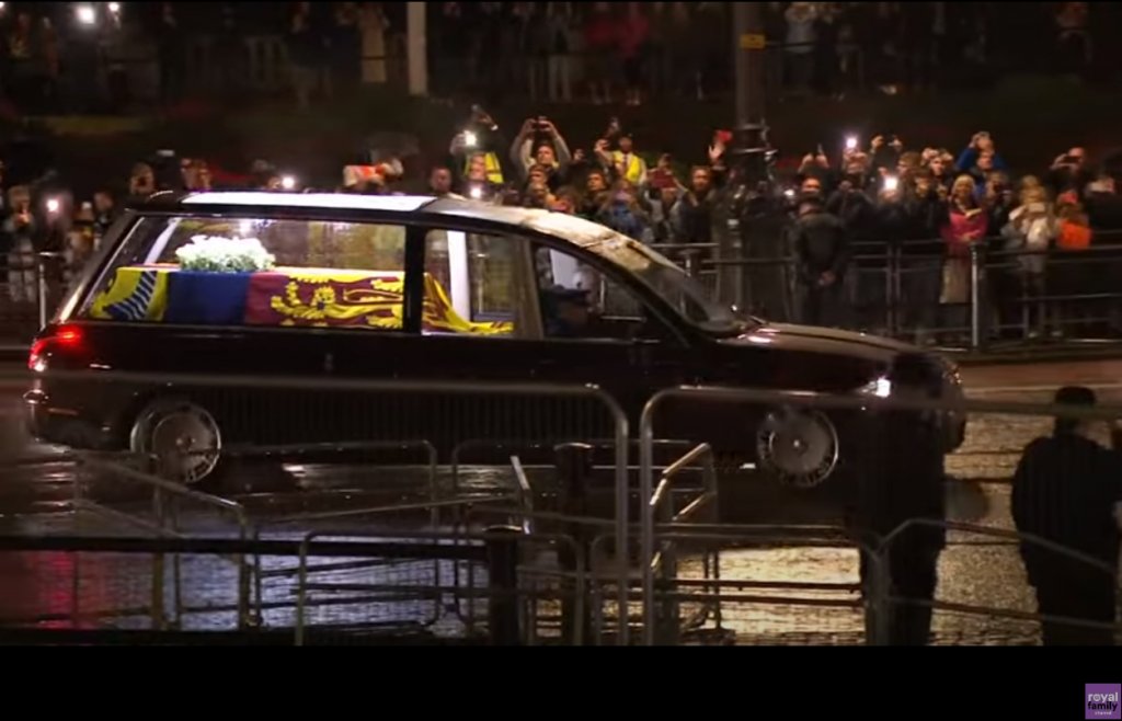 Υπό τις επευφημίες και τα χειροκροτήματα των πιστών υπηκόων της, η σορός της βασίλισσας Ελισάβετ πέρασε τις πύλες των Ανακτόρων του Μπάκιγχαμ λίγο μετά τις 23:00 για μια τελευταία νύχτα στην επίσημη κατοικία της στο Λονδίνο. Εκεί την περίμεναν τα παιδιά της και τα εγγόνια της.