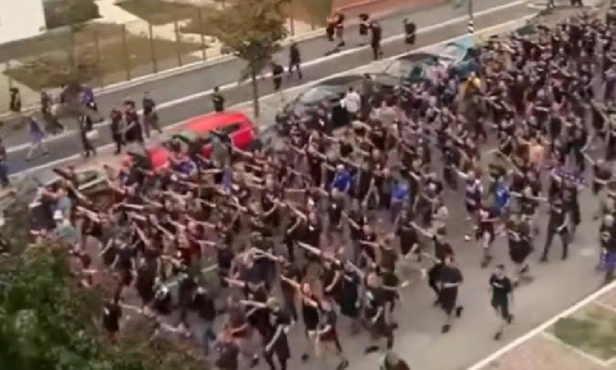 Οι εικόνες ντροπής στο "Βελοντρόμ", όπου μερίδα οπαδών της Άιντραχτ Φρανκφούρτης χαιρετούσε ναζιστικά, στο ματς με τη Μαρσέιγ, επαναλήφθηκαν, μια μέρα μετά, στους δρόμους του Μιλάνου.