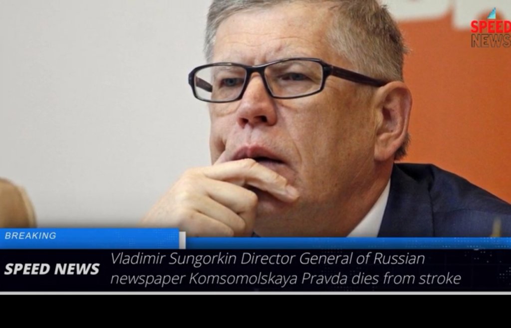 Κατέληξε ο 68χρονος αρχισυντάκτης της Pravda, Vladimir Nikolayevich Sungorkin, κατά τη διάρκεια επαγγελματικού ταξιδιού, με τον Βλαντιμίρ Πούτιν να χάνει «μυστηριωδώς» άλλον έναν σύμμαχό του.