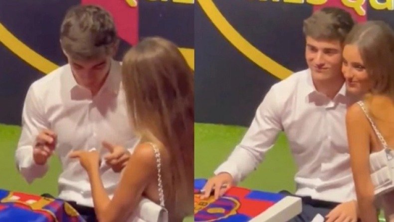 Ο Γκάβι πήρε το χαρτάκι, χωρίς να κρύψει την αμηχανία του και φωτογραφήθηκε με την κοπέλα.