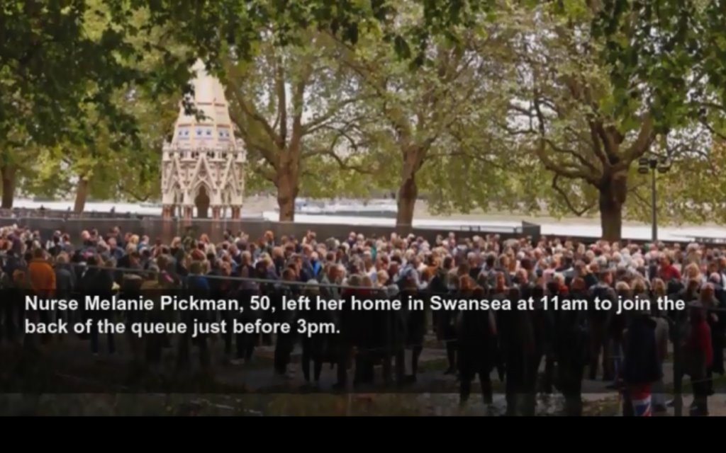 Πλέον η ουρά έχει καταλάβει όλη τη διαθέσιμη διαδρομή των άνω των οκτώ χιλιομέτρων από το Westminster Hall όπου εκτίθεται το φέρετρο έως το Πάρκο Σάδαρκ.