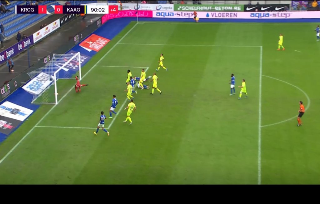 Στο 61ο λεπτό σημειώθηκε η πρώτη καλή στιγμή στο ματς, με τον Ελ Κανούς της Γκενκ να πιάνει το δυνατό σουτ και τον τερματοφύλακα της Γάνδης να εξουδετερώνει. Λίγες οι καλές φάσεις στο ματς και, τελικά, στο 90ο λεπτό, από εκτέλεση φάουλ, ο Μπράιαν Χέινεν, με κεφαλιά, έστειλε τη μπάλα στα δίχτυα, για το 1-0 της Γκενκ.