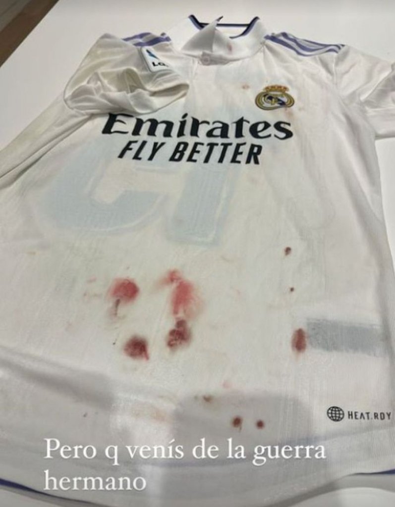 Πέρα απ’ αυτό ωστόσο, μάτωσε… κυριολεκτικά για να κρατήσουν οι Μαδριλένοι το υπέρ τους σκορ, με τη Μίνα Μπονίνο να δημοσιεύει σχετική φωτογραφία της φανέλας του στο instagram και ν’ αναφέρει: