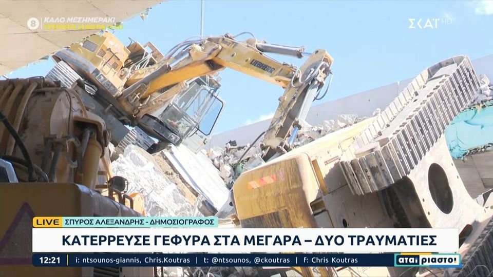Κατέρρευσε γέφυρα στα Μέγαρα - Δύο τραυματίες