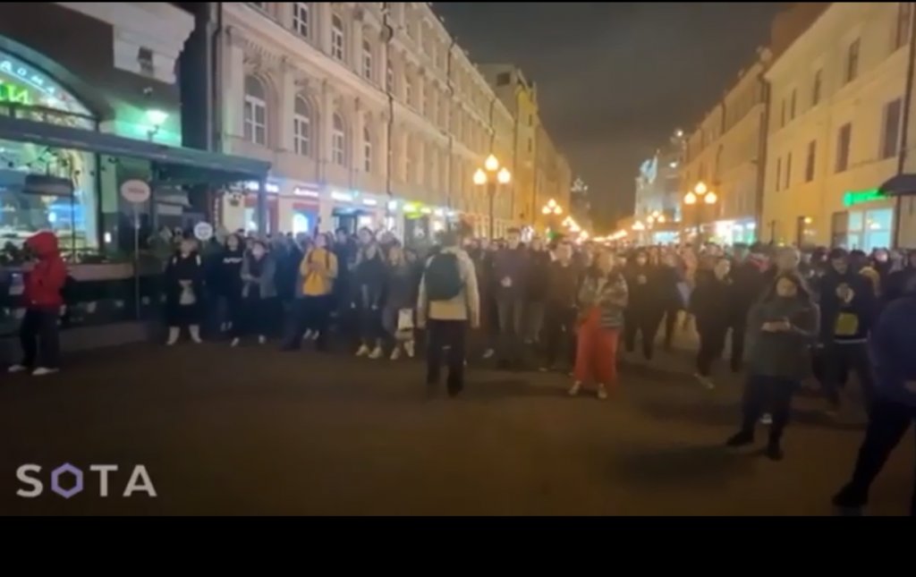 A crowd gathered this evening on Arbat, Moscow's main pedestrian street, shouts "Send Putin to the trenches!" pic.twitter.com/pkm8vynnxw