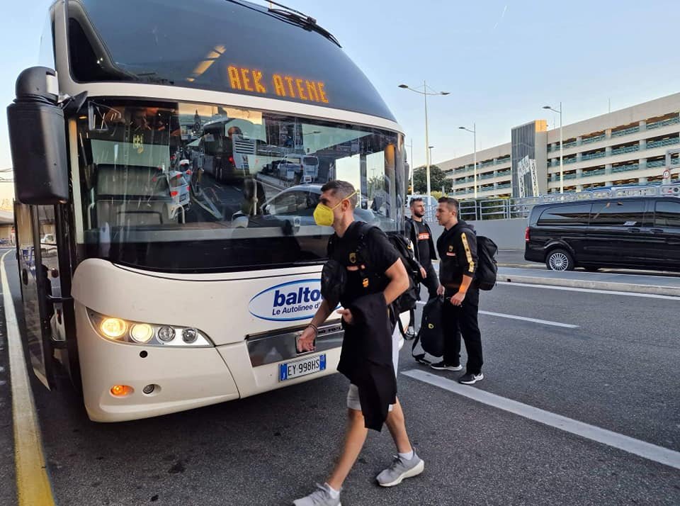 Εφτασε στη Ρώμη η αποστολή της ΑΕΚ και ταξιδεύει στην πορεία για το Τέραμο.