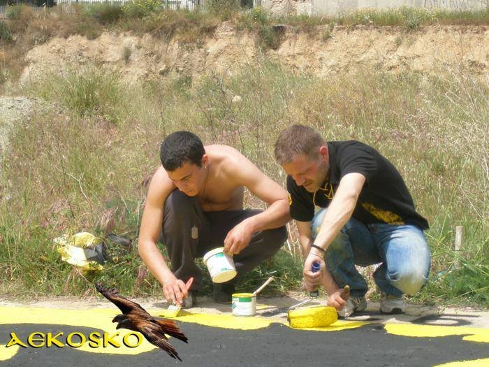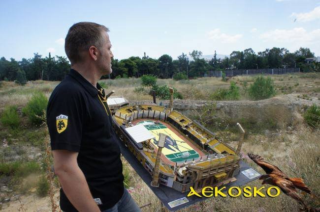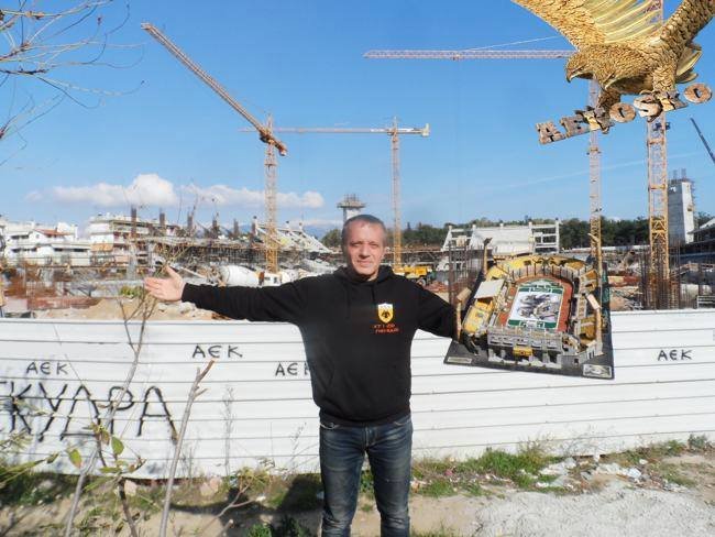 Και πάμε στην ιστορία της μακέτας που έχει κατασκευάσει, με την εικόνα του να την κουβαλάει πάντα να είναι χαραγμένη στις αναμνήσεις πολύ κόσμου. Ο Γιώργος Κοσκινάς μας εξηγεί γιατί έμπαινε σε αυτή τη διαδικασία και τον μοναδικό λόγο που φρόντιζε να δίνει… ζωή στο οικόπεδο της ΑΕΚ τα χρόνια της ξενιτιάς: «Κουβαλούσα μαζί μου τη μακέτα γιατί συμβολικά ήθελα να περάσω ότι πρέπει ο κόσμος να πάρει την κατάσταση του γηπέδου στα χέρια του – να την πάρει στα χέρια του εννοώ με κόσμιο τρόπο φυσικά. Να πιέσει ο κόσμος να φτιάξουμε γήπεδο. Όχι να δείξω τη μακέτα, την οποία την είχα φτιάξει το 1988! Με παιδικό μυαλό τότε. Ήθελα συμβολικά να περάσω μήνυμα στον κόσμο. Το να βλέπεις να γκρεμίζεται το σπίτι σου και να βλέπεις να το έχεις στα χέρια σου σε μικρογραφία ήταν ιδιαίτερο. Ολα τα υπόλοιπα ήρθαν αυθόρμητα. Ακόμα και η σημαία το 2007, οι εκδηλώσεις, οι πίτες όλα ήταν αυθόρμητα. Να μη χάσει το κλίμα ο χώρος ήθελα. Να μην ξεχάσει το οικόπεδο ο κόσμος της ΑΕΚ. Και οικόπεδο που ήταν η ΑΕΚ ήταν εκεί. Ήθελα εκεί να θυμάται ο κόσμος. Μετά ήρθε η ώρα του Δικέφαλου. Μου ήρθε να το φτιάξουμε, να το ζωγραφίσουμε, ώστε να φαίνεται από το google earthe! Μετά ήρθε πορεία η σκέψη να καθόμαστε μέσα, να περνάμε παρέα κάποιες ώρες. Να πίνουμε μπύρες, να σκεφτόμαστε τα παλιά. Συμβολικές όλες οι κινήσεις: να μην ξεχάσουμε το χώρο και να πάρουμε την κατάσταση στα χέρια μας. Θυμάμαι 23 Νοεμβρίου του 2003 έγινε το πρώτο συλλαλητήριο για το γήπεδο στη Φιλαδέλφεια! Ηταν κουραστικό όλο αυτό, άλλα συνάμα και τόσο ωραίο το συναίσθημα και να το ζεις και το βασικό ότι το μεταδίδεις. Είναι μια ικανοποίηση να μεταφέρεις στον κόσμο έστω μέσα από την κάμερα να χτίζεται. Εστω μπαίνει κάποιος στο κλίμα ότι κάτι όμορφο δημιουργείται πάλι. Αυτό με ενδιέφερε. Θέλω να πιστεύω ότι όλα τα παιδιά που τραβούσαν βίντεο με τα έργα το κάναμε: βάλαμε στο κλίμα τον κόσμο. Περιμένω τώρα τα εγκαίνια να συναντηθούμε όλοι μαζί… Θα ξαναπάρω τη μακέτα στα χέρια μου μετά από 5 χρόνια! Είχα πει το «αντίο» όταν ξεκίνησε να χτίζεται, τώρα που χτίστηκε θέλω να ξαναπάρω τη μακέτα στα χέρια μου να ζήσω πάλι το παρελθόν».