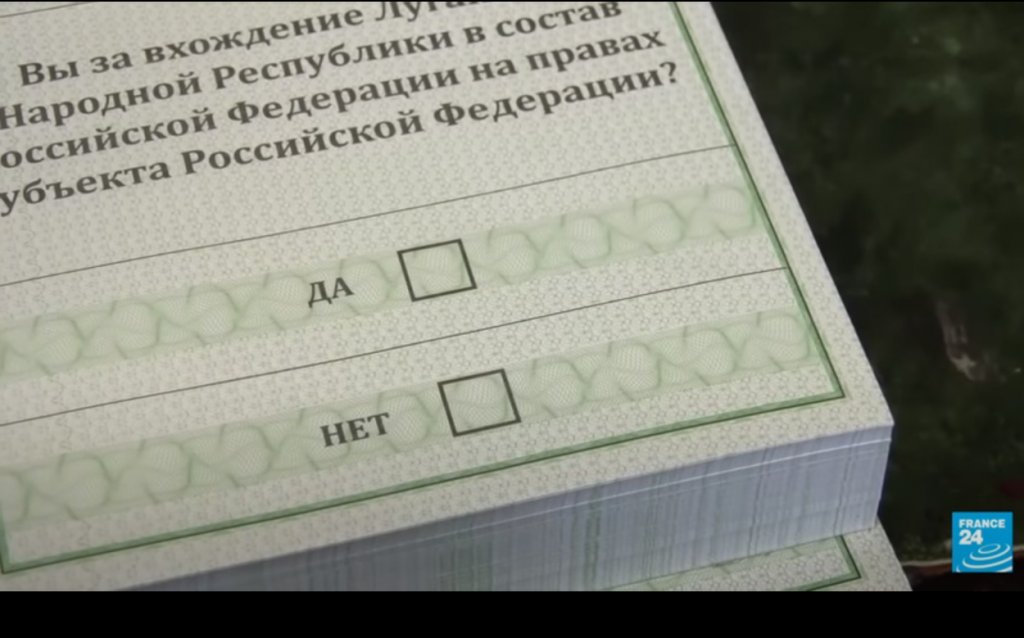 Η Ρωσία διεξήγαγε τις προηγούμενες ημέρες «δημοψηφίσματα» όπως τα χαρακτηρίζει σε τέσσερις εν μέρει ελεγχόμενες από αυτήν περιοχές της Ουκρανίας -το Ντονέτσκ, το Λουχάνσκ, τη Χερσώνα και τη Ζαπορίζια-- και είπε πως τα αποτελέσματα έδειξαν πως οι κάτοικοι τάχθηκαν με συντριπτικές πλειοψηφίες υπέρ της ένταξης στη Ρωσία.
