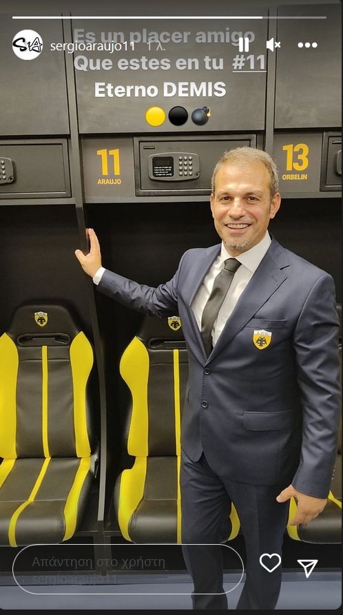Στα αποδυτήρια της Αγιά Σοφιάς - ΟΠΑΠ Arena κατέβηκε χθες ο Ντέμης Νικολαΐδης. Ο οποίος, δεν μπορούσε να μην πάει να φωτογραφηθεί μπροστά από το αγαπημένο του 11. Ο Ντέμης, πόζαρε με ένα τεράστιο χαμόγελο μπροστά από τη θέση του Σέρχιο Αραούχο, με τον Απάτσι σήμερα, μια ημέρα μετά τα εγκαίνια, να ανεβάζει την συγκεκριμένη στιγμή στο Instagram, γράφοντας: «Είναι χαρά φίλε μου, να έχω το δικό σου #11! Αιώνιος Ντέμης»!