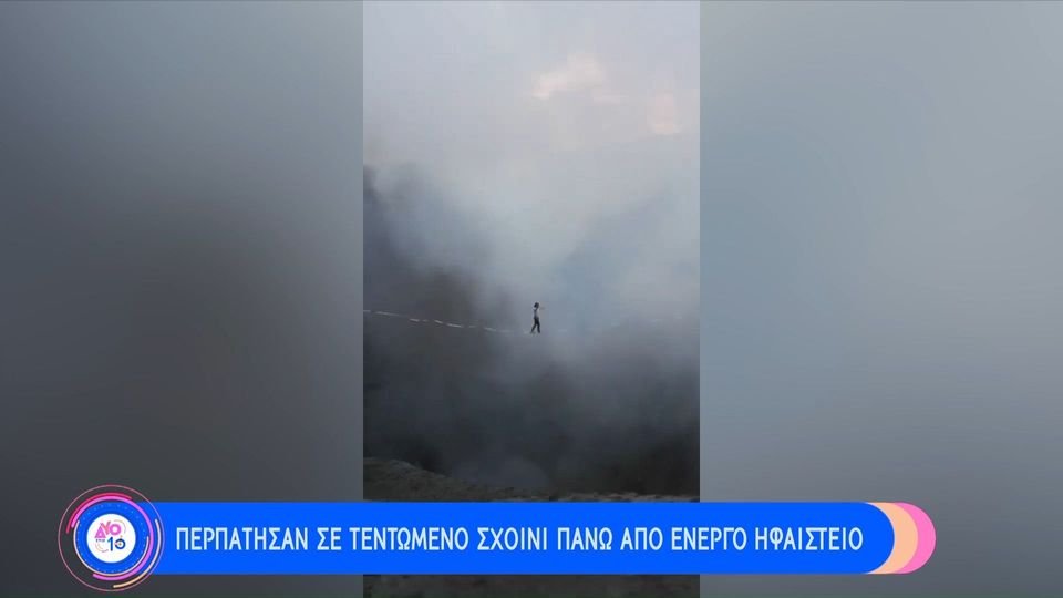 Περπάτησαν σε τεντωμένο σχοινί πάνω από ενεργό ηφαίστειο (VIDEO)