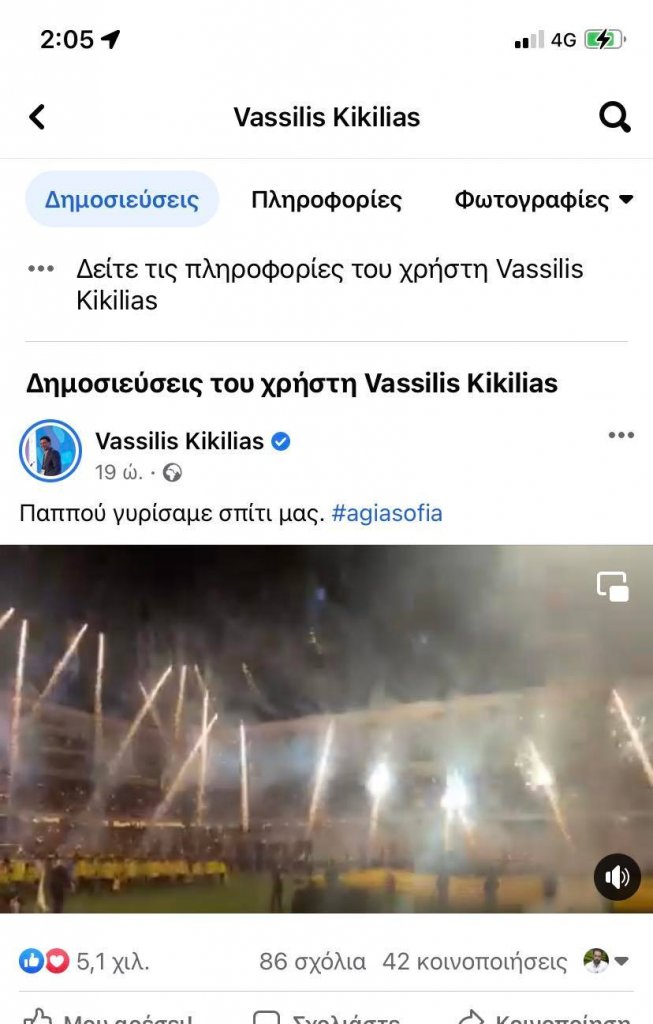 Με ένα ιδιαίτερα συγκινητικό μήνυμα ο Βασίλης Κικίλιας έγραψε κι αυτός τη στιγμή του για την επιστροφή της ΑΕΚ στο γήπεδό της: «Παππού, γυρίσαμε σπίτι μας», έγραψε ο Κικίλιας στα social media.