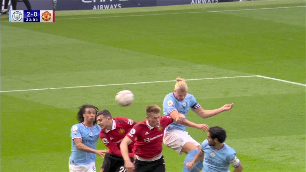 Ο Ντε Μπρόινε εκτέλσε το κόρνερ, ο Χάαλαντ κατάπιε όλους τους αντιπάλους του και με κεφαλιά έκανε το 2-0. Ο Μαλάσια έδιωξε την μπάλα αλλά αυτή είχε περάσει τη γραμμή.