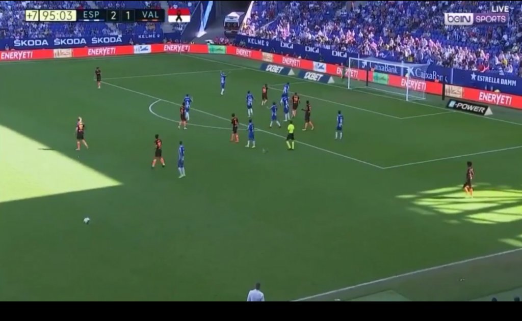 Στο 6ο λεπτό των καθυστερήσεων, ο Κομέρ επιχείρησε σέντρα, η πορεία της μπάλας αιφνιδίασε τον Φερνάντεθ, που δεν μπόρεσε να διώξει, εκείνη κατέληξε στα δίχτυα και η Βαλένθια έφυγε με τον βαθμό της ισοπαλίας, 2-2, από την έδρα της Εσπανιόλ.