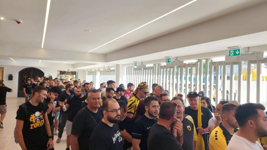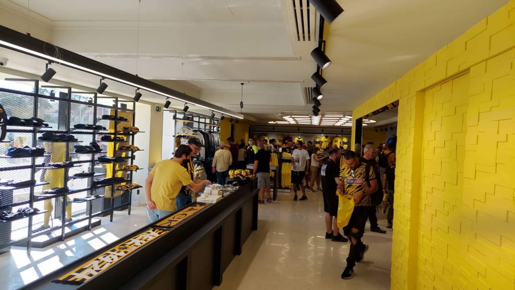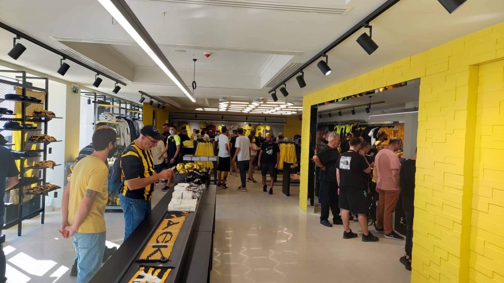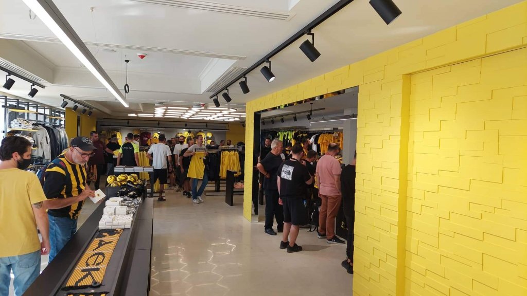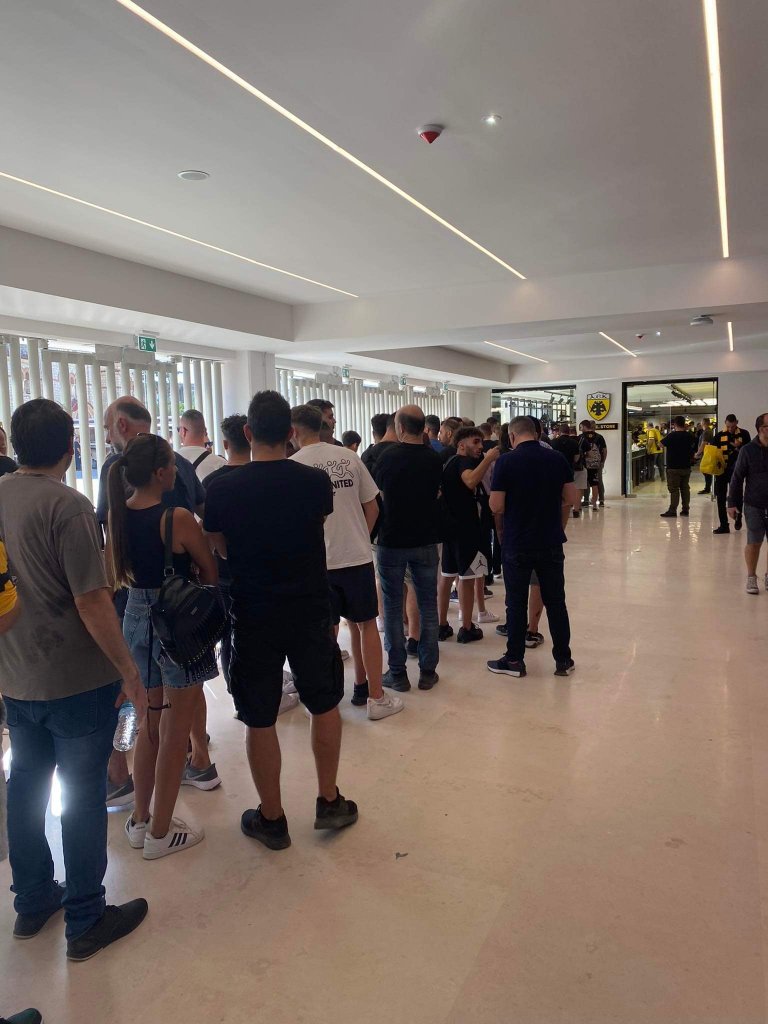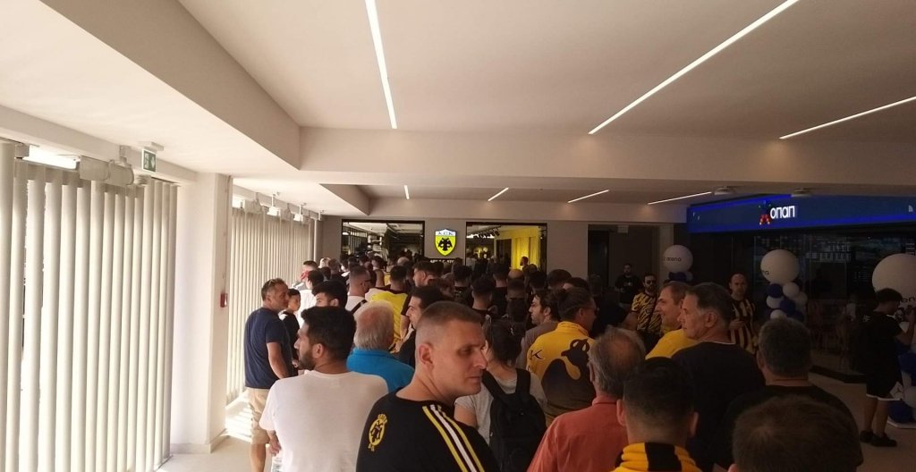Ο… κακός χαμός γίνεται στη νέα μπουτίκ της ΑΕΚ μέσα στην «Αγιά Σοφιάς - OPAP Arena» λίγες ώρες πριν την έναρξη του αγώνα με τον Ιωνικό. Κόσμος περιμενει στην ουρά για να μπει και να αγοράσει προϊοντα της Ένωσης με την ουρά να φτάνει ως το Τσαγκαράδικο!