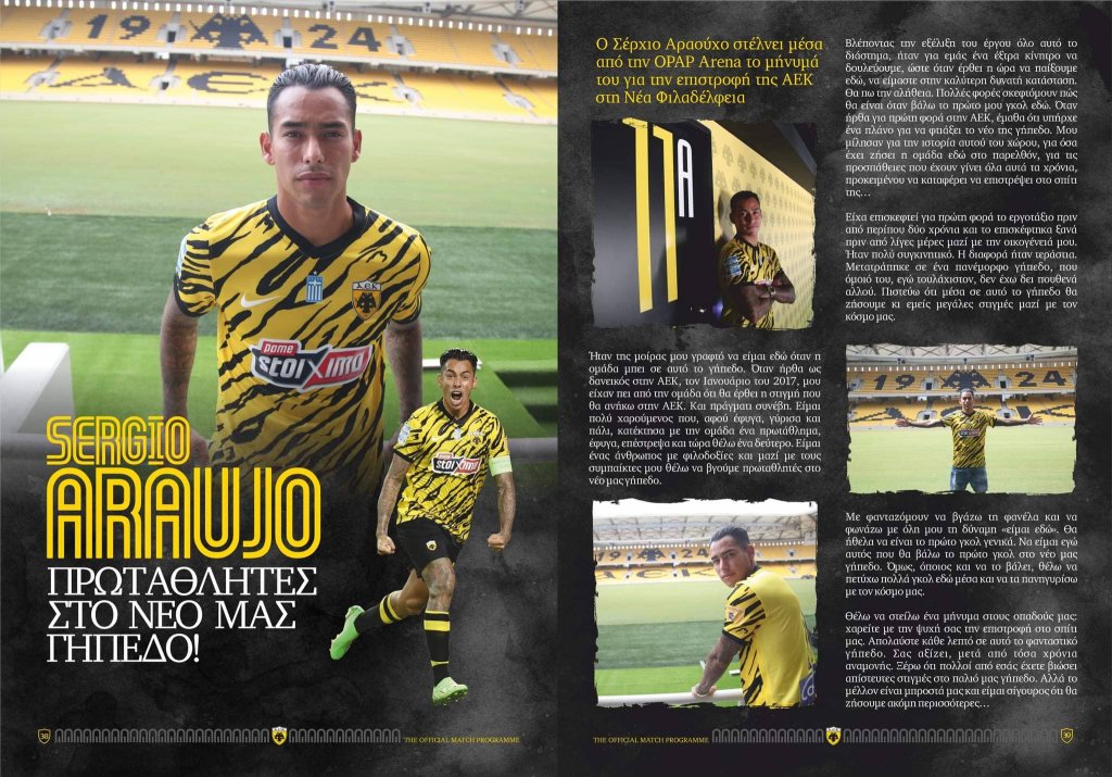 Η ΑΕΚ φιλοξενεί τον Ιωνικό σε λίγη ώρα σε ένα ιστορικό παιχνίδι στην «OPAP Arena» και στο Match Programme του αγώνα μίλησε ο Σέρχιο Αραούχο.