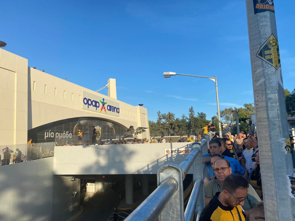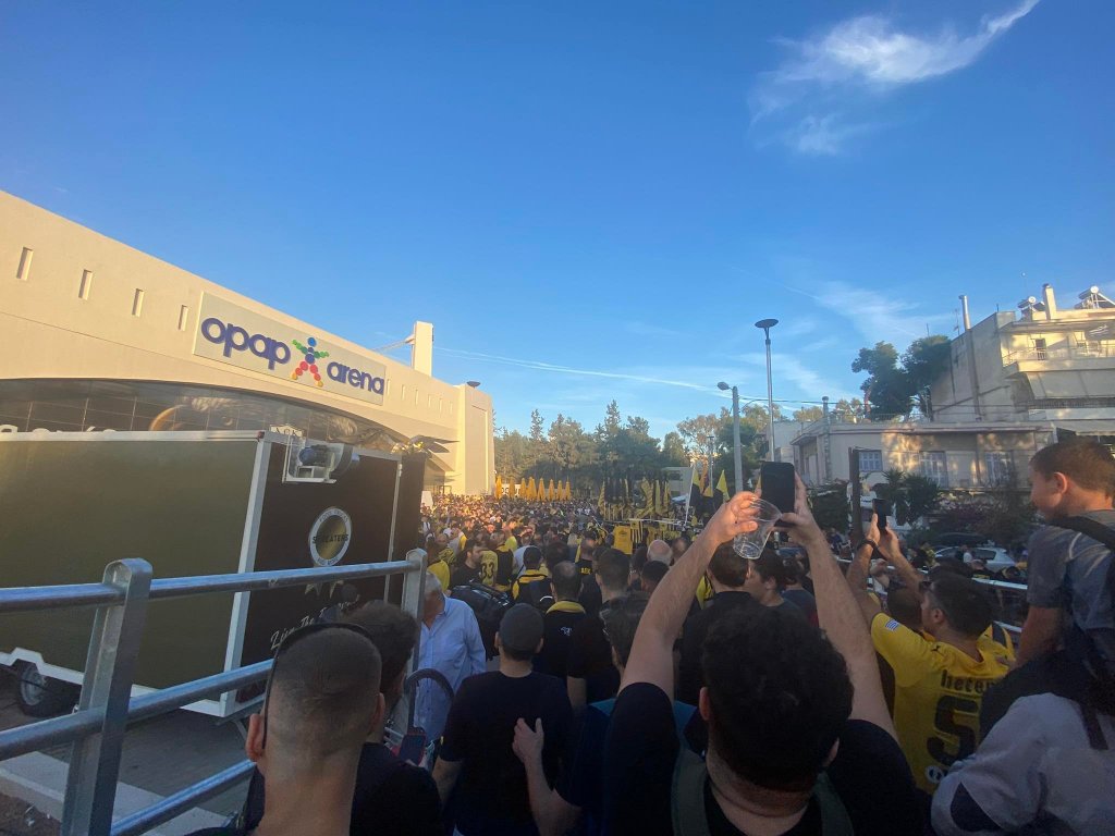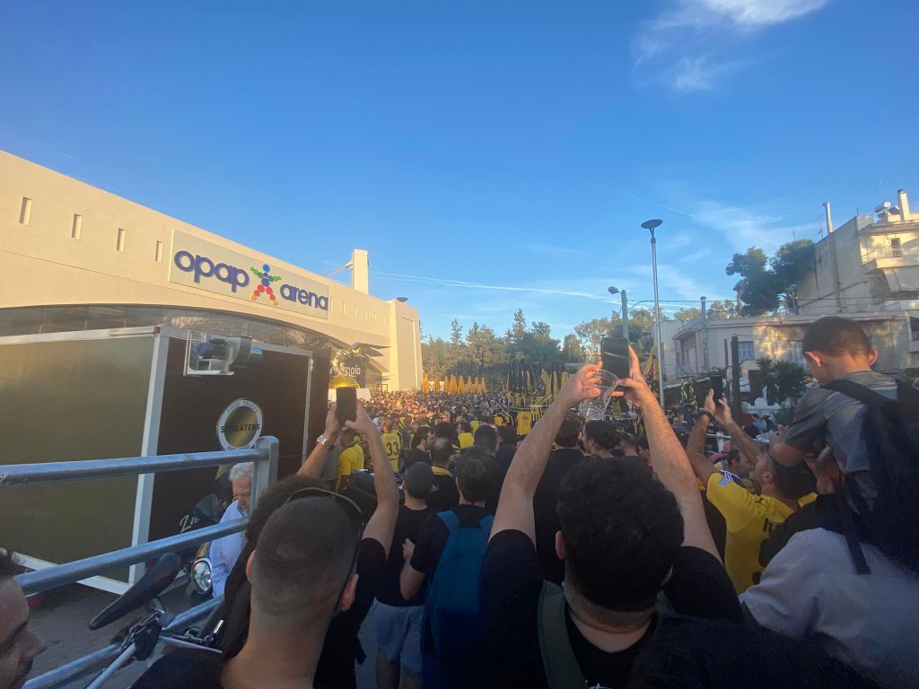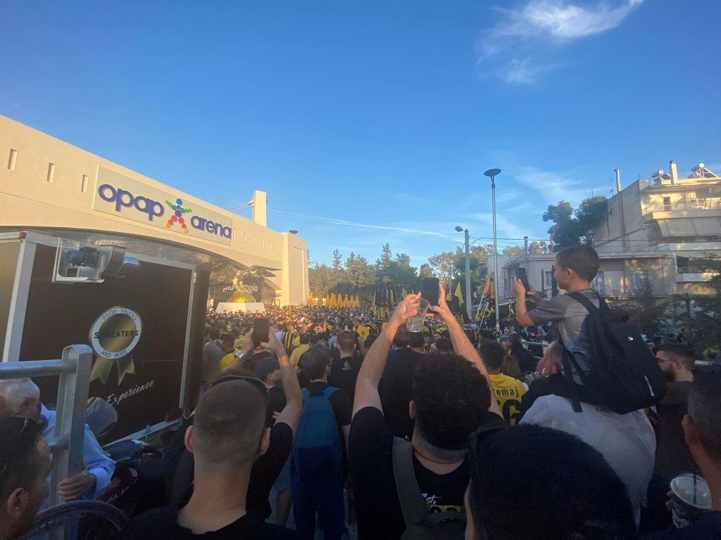 Απίστευτη η υποδοχή της αποστολής της ΑΕΚ από τον κόσμο της ομάδας. Το πούλμαν με τους παίκτες και το επιτελείο της Ένωσης έφτασε στην Αγιά Σοφιά/OPAP Arena λίγο πριν τις 18:30 και γνώρισε αδιανόητη αποθέωση.
