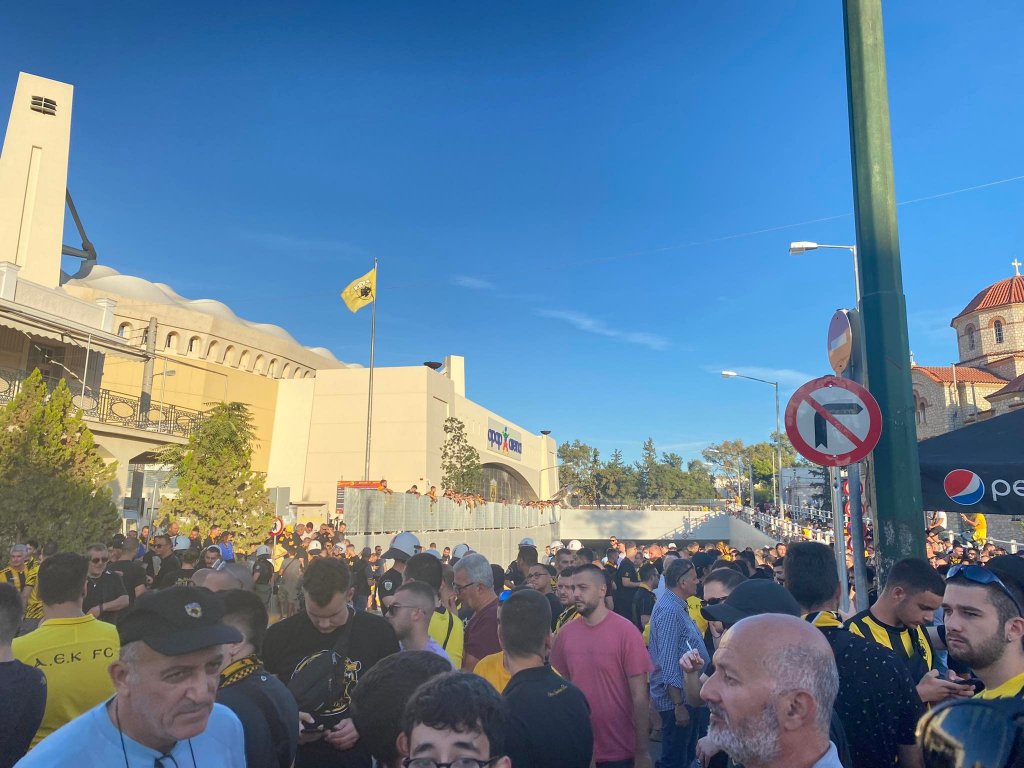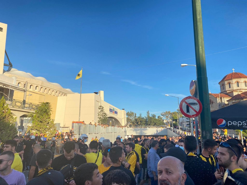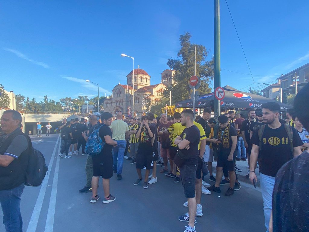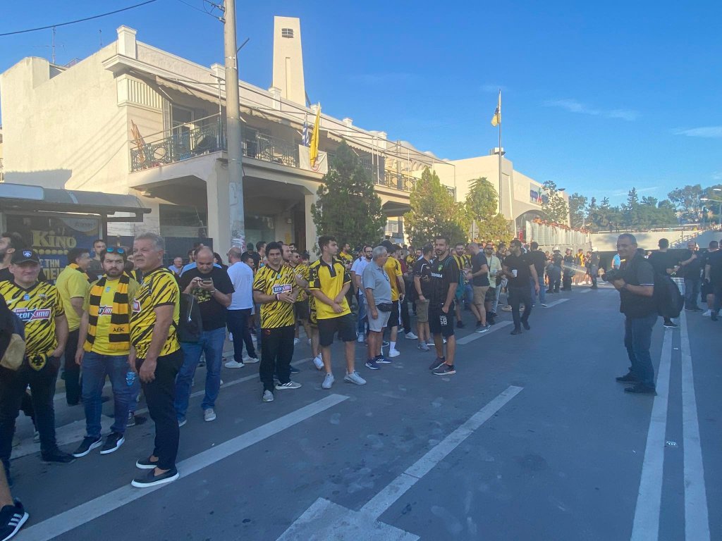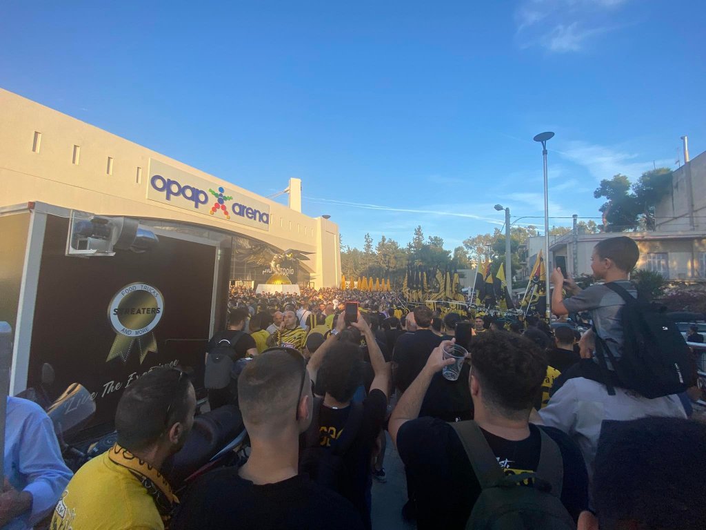 Απίστευτη η υποδοχή της αποστολής της ΑΕΚ από τον κόσμο της ομάδας. Το πούλμαν με τους παίκτες και το επιτελείο της Ένωσης έφτασε στην Αγιά Σοφιά/OPAP Arena λίγο πριν τις 18:30 και γνώρισε αδιανόητη αποθέωση.