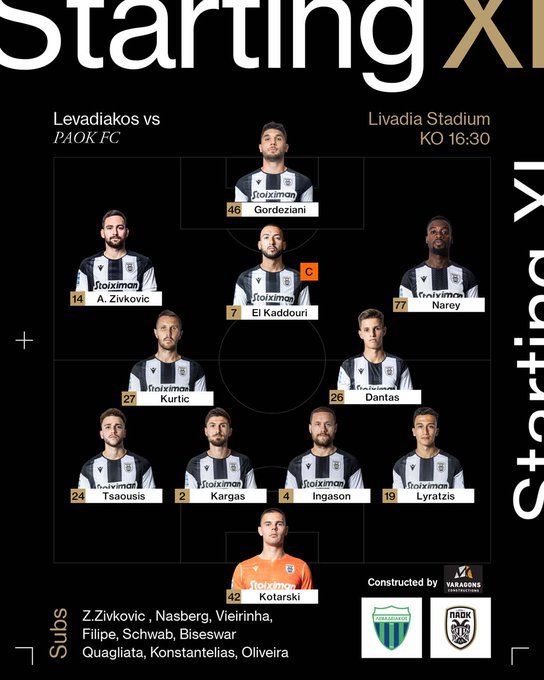 Στην εστία θα είναι ο Κοτάρσκι και από τα δεξιά προς τα αριστερά θα βρίσκονται οι Λύρατζης, Ίνγκασον, Κάργας και Τσαούσης.