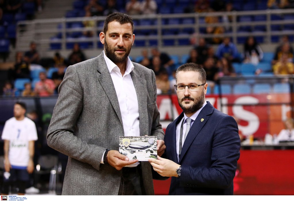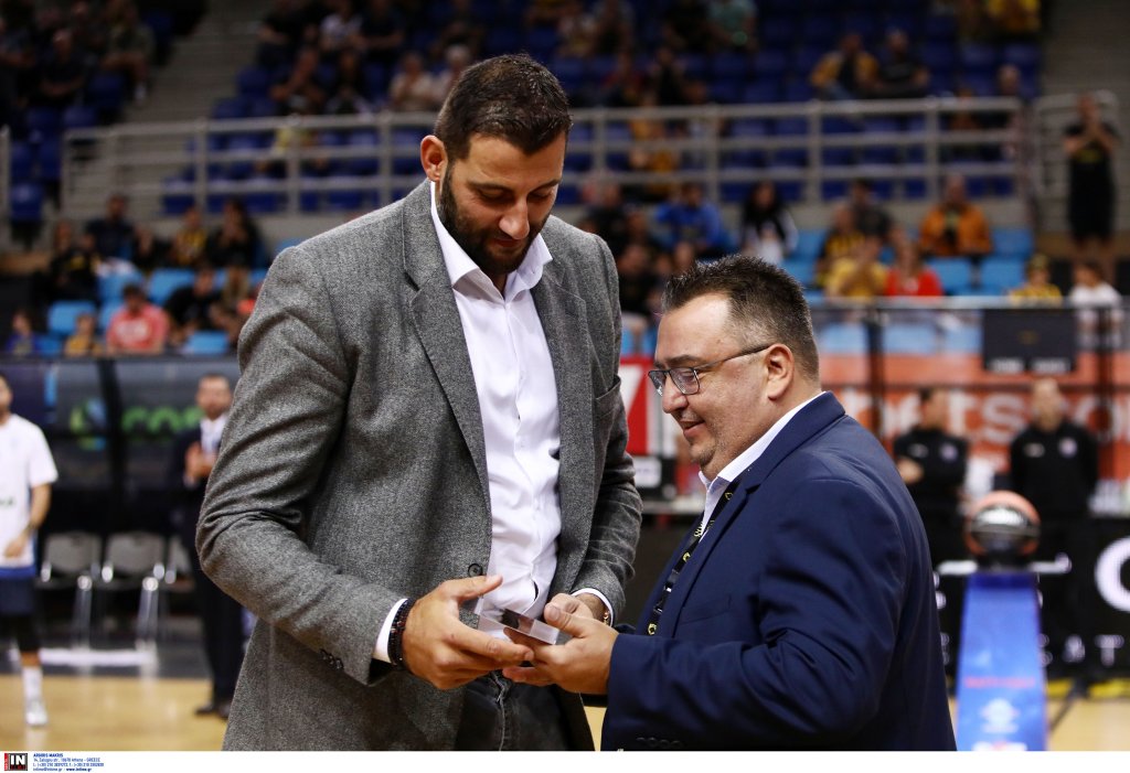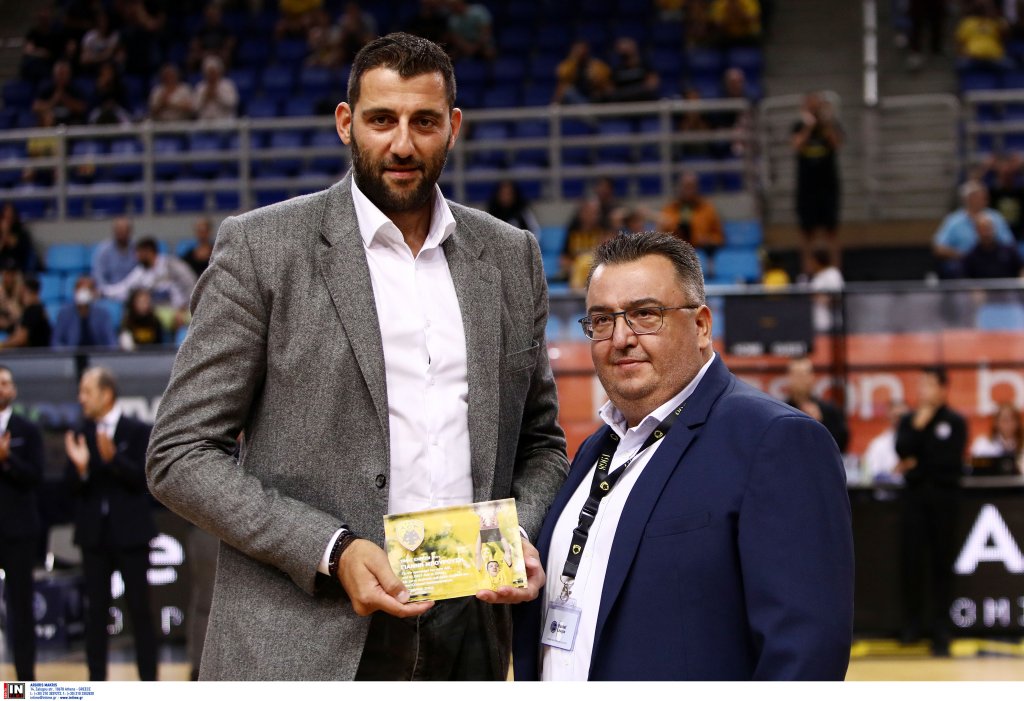 Η ΑΕΚ, μέσω του managing director της ΚΑΕ, Παναγιώτη Τριαντόπουλου, βράβευσε τον παλαίμαχο σέντερ για την προσφορά του τόσο στην ομάδα, όσο και στο μπάσκετ γενικότερα.