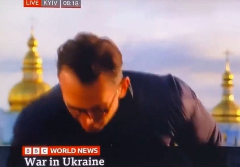 Τη στιγμή της επίθεσης ο ανταποκριτής του BBC μετέφερε την κατάσταση που επικρατεί στο ουκρανικό μέτωπο, όταν ξαφνικά ακούγεται ο ήχος της βόμβας που έπεφτε σε περιοχή του Κιέβου.