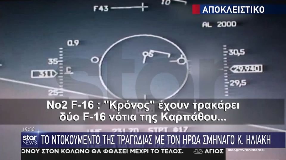 Ένα βίντεο-ντοκουμέντο που δείχνει τη στιγμή που το τουρκικό F-16 πέφτει πάνω στο μαχητικό του ήρωα σμηναγού Κωνσταντίνου Ηλιάκη, πάνω από το Αιγαίο Πέλαγος, στις 23 Μαΐου 2006, αποκάλυψε σήμερα ο τηλεοπτικός σταθμός Star στο κεντρικό δελτίο ειδήσεων με τη Μάρα Ζαχαρέα.