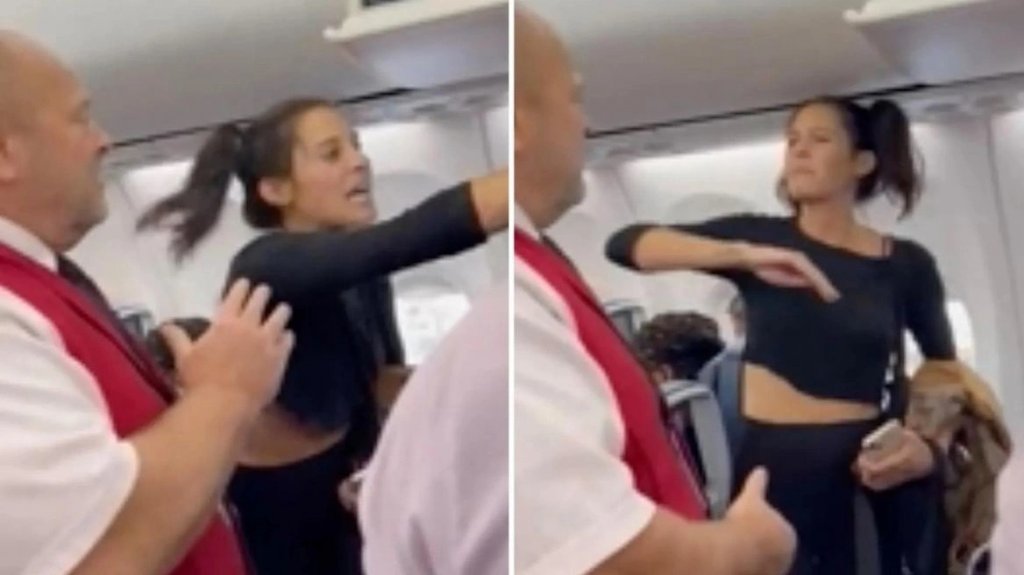 Αφού αρνείται να αποβιβαστεί, αρχίζει να εκνευρίζεται και να γίνεται ακόμα πιο επιθετική, παρόλο που το προσωπικό της λέει ότι θα της επιστραφεί το αντίτιμο του εισιτηρίου της.