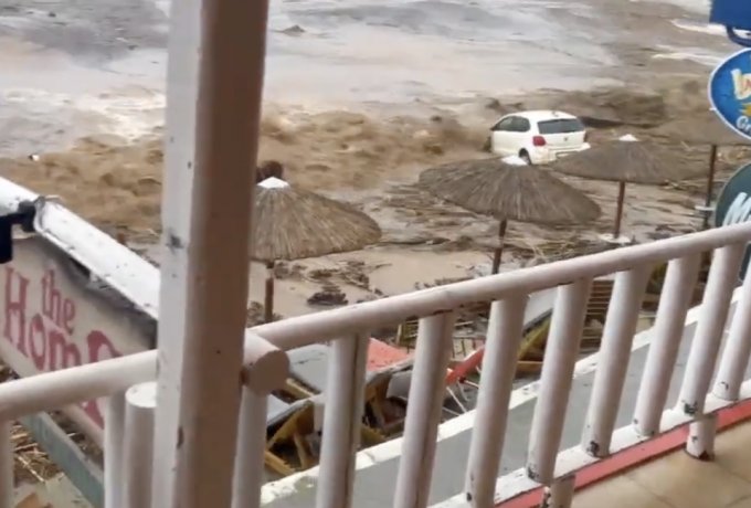 Μάλιστα, oι δρόμοι στην περιοχή έχουν μετατραπεί σε ερμητικά ποτάμια παρασύροντας στο πέρασμά τους από ξύλα και πέτρες μέχρι αυτοκίνητα.