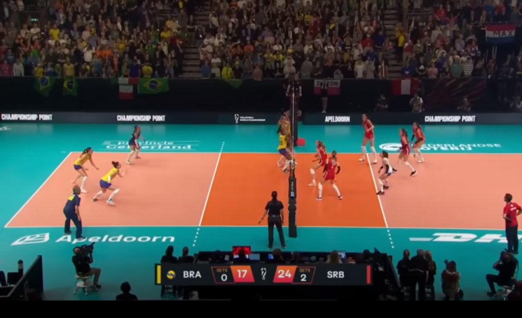 Στο πρώτο σετ η Βραζιλία ξεκίνησε καλύτερα και έφτασε στο 7-10, αλλά με τα σερβίς της Πόποβιτς η Σερβία έκανε την ανατροπή και με την Ντρίτσα να μοιράζει το παιχνίδι παντού είχε αυτή πλέον το πάνω χέρι. Η Μπόσκοβιτς πήρε μόλις 9 επιθέσεις στο πρώτο σετ, όσες και η Μπούσα ενώ 8 είχε η Λόζο, με την τελευταία με το άουτ που έκανε να διαμορφώνει το 24-24 (από 24-22), αλλά επίθεση της Μπόσκοβιτς και άουτ της Γκάμπι έγραψαν το τελικό 26-24.