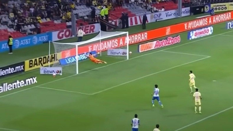 Στο παιχνίδι κόντρα στην Πουέμπλα, ο Μεξικανός τερματοφύλακας της Αμέρικα εκτινάχθηκε, εντυπωσιακά, και απέκρουσε σουτ του Μανκουέγιο.